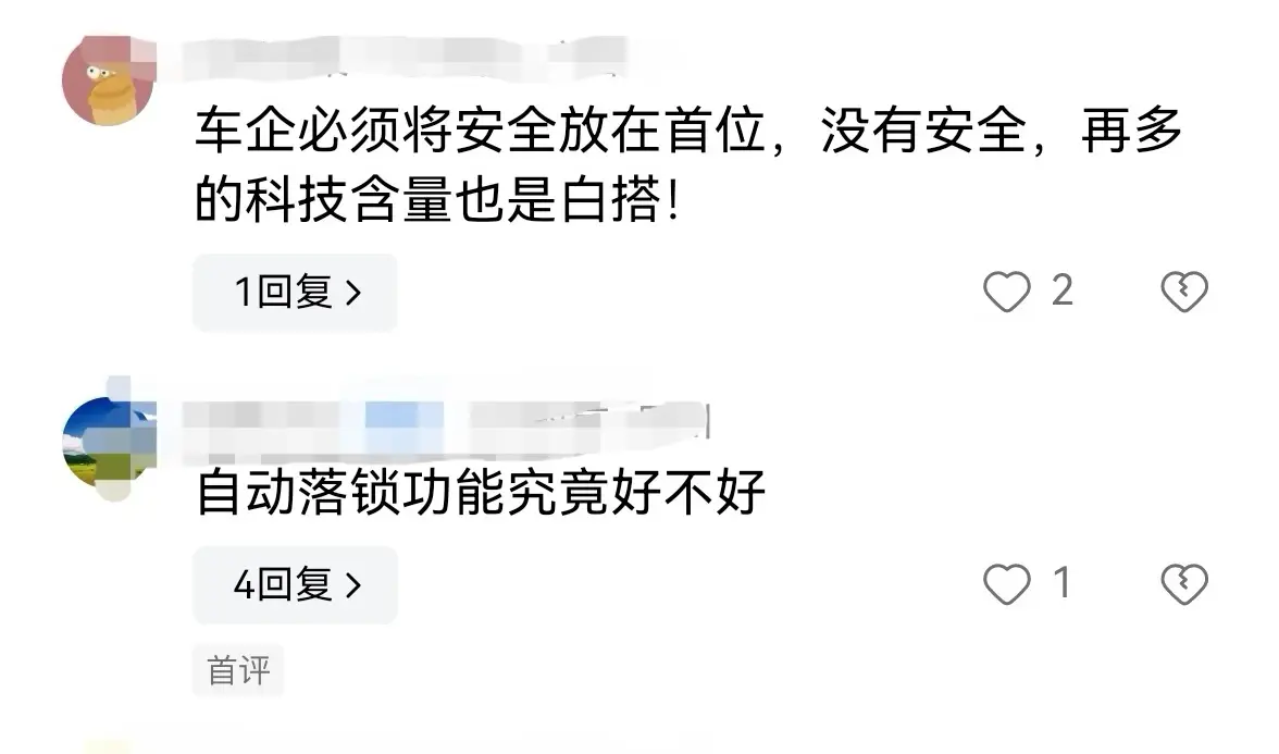 事件发生后网友质疑质疑车辆的AEB和GAEB没有自动紧急制动、安全气囊没做保护、车门不能自动解锁、隐形门把手无法打开车门存在安全隐患等问题。