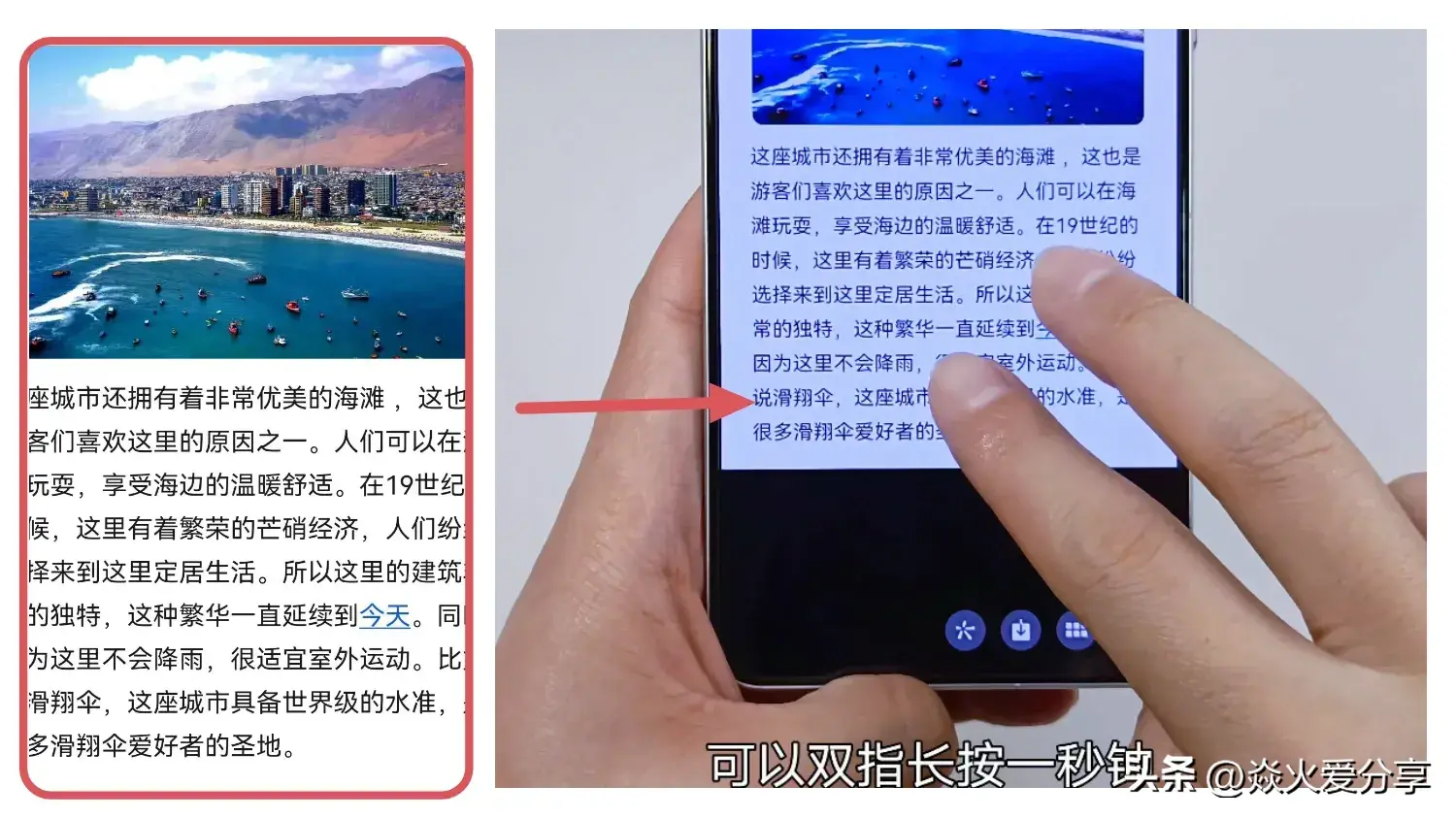 图片里面的文字,如果想把它提取出来,也可以双指长按1秒钟。