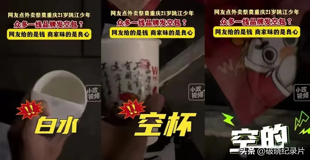 5月3日,重庆长江大桥的人行道上,摆满了网友点的外卖,目的是为了祭奠这位21岁的少年,随着点单人数越来越多,很多外卖商家都扛不住了,点的汉堡送来的是空包,点的奶茶送的是白开水。