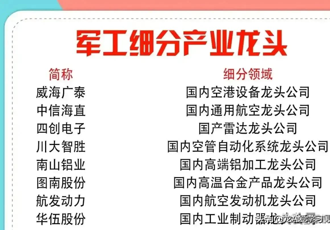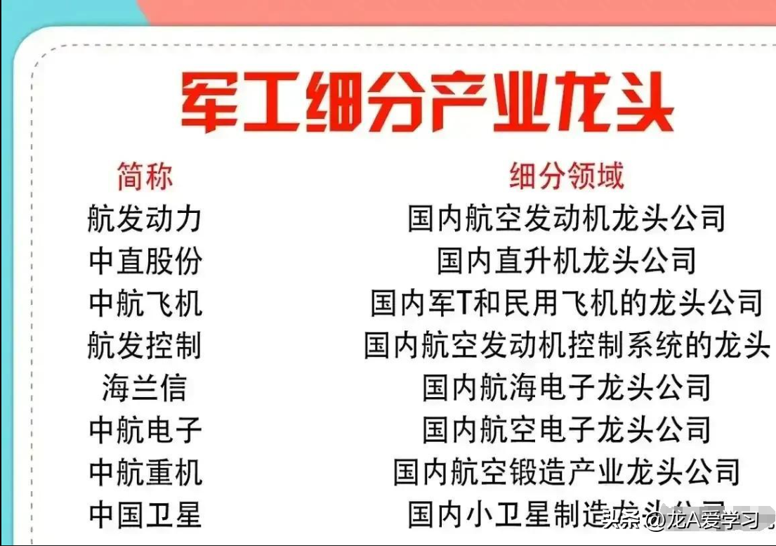 机电系统龙头,大飞机碳纤维材料龙头等。