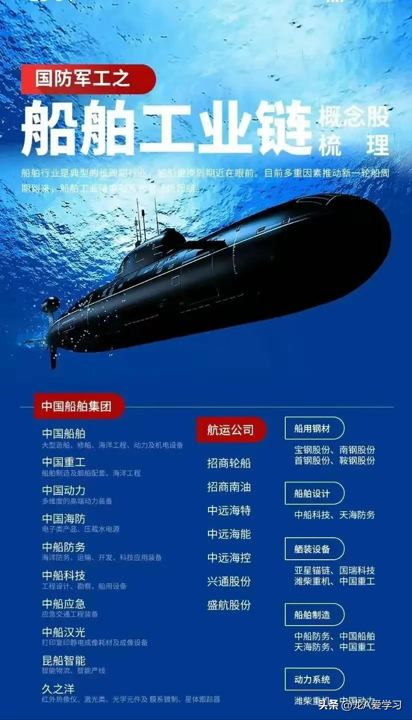 船舶工业链:舾装设备,船舶制造,动力系统等。
