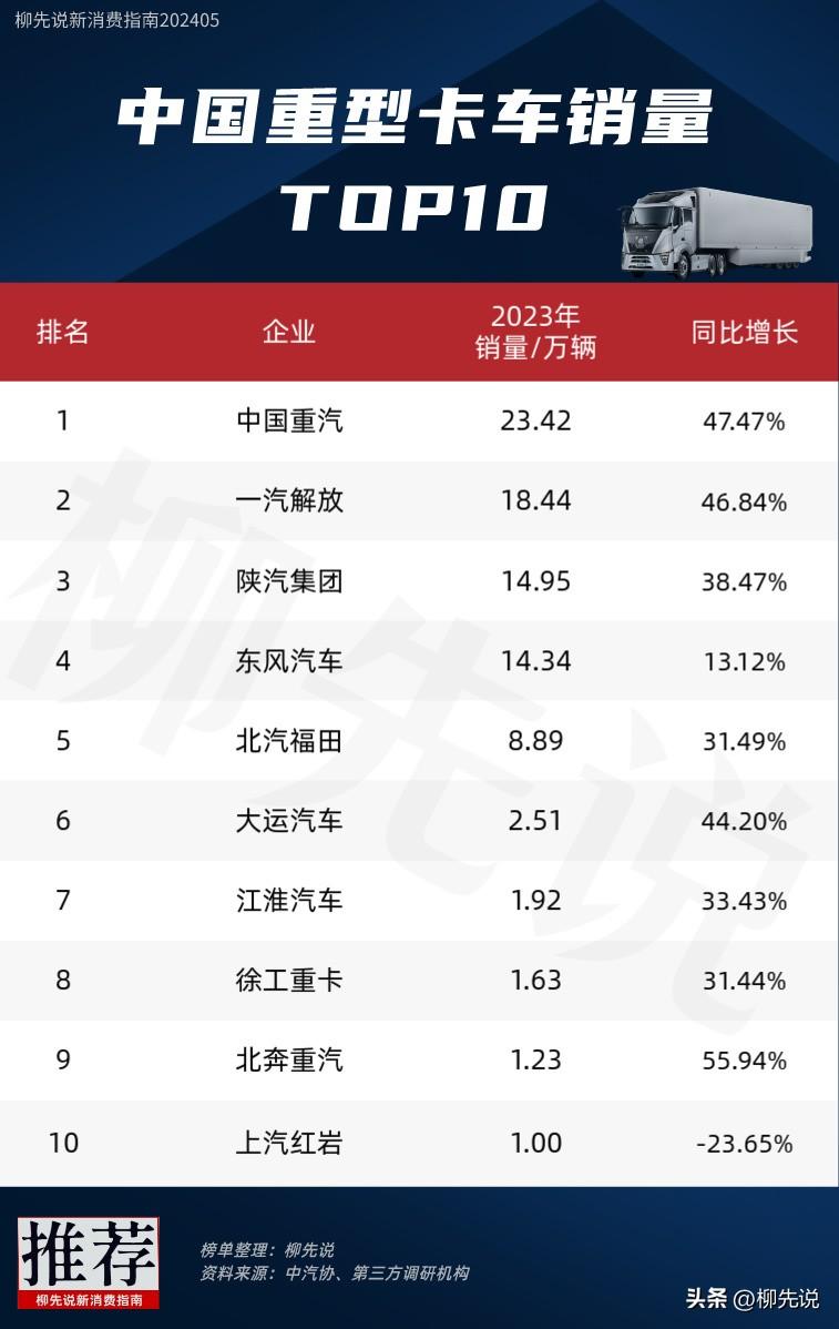 在国内市场,中国重卡企业间的竞争格局清晰呈现,第一阵营包括中国重汽、一汽解放、陕汽集团、东风汽车等重量级玩家。这些企业依托强大的研发实力、丰富的产品线以及完善的销售服务网络,牢牢占据市场主导地位。它们不仅在传统燃油车领域深耕细作,更是在新能源、智能化转型上先行一步,通过技术创新和产品升级,力图在日益激烈的市场竞争中保持领先。