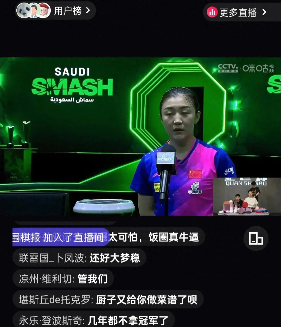 结果看到陈梦赢了,莎莎粉丝不干了。