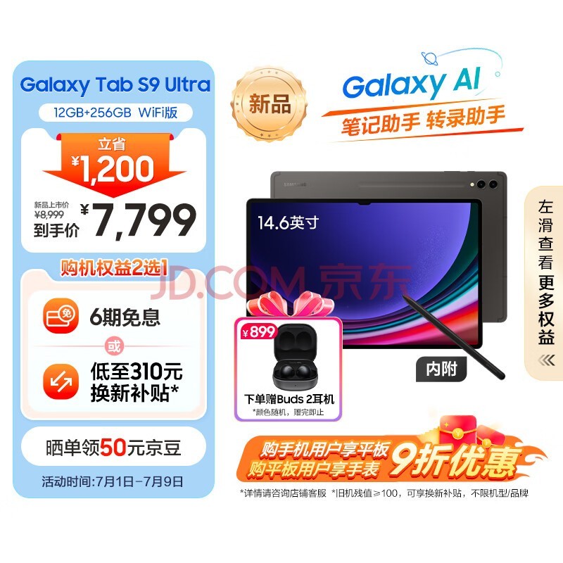 三星(SAMSUNG)S9 Ultra Al智享学习办公平板电脑14.6英寸 120Hz 12G+256GB WIFI版 AI平板 云影灰