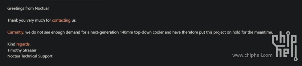 可以看出,在目前市场上并未出现足够多的需求来支持猫头鹰继续开发这种类型的散热器产品。不过这也并不意味着猫头鹰已经放弃这个市场,未来可能会有其他因素促使他们重新开始研发新一代的产品。