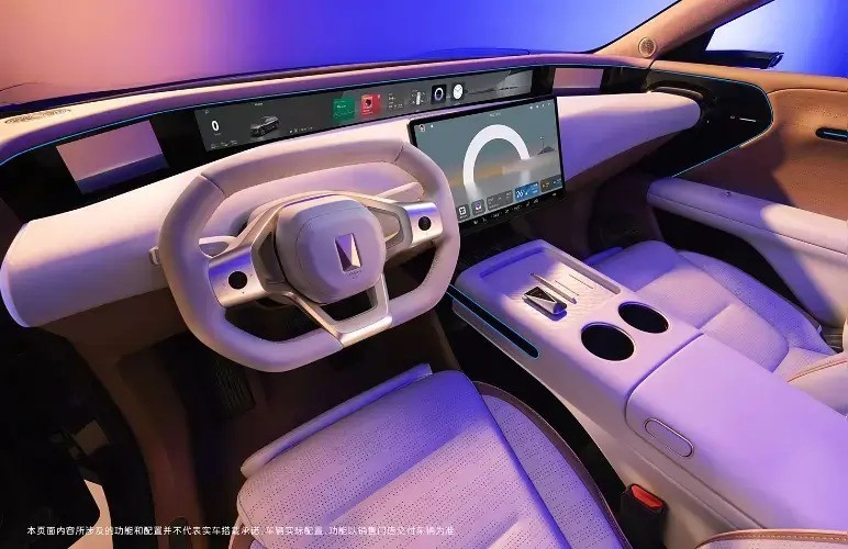 从公布的图片来看,阿维塔07的内饰设计呈现出家族风格影子,中控台具有层次感,并采用贯穿式的带鱼屏幕设计,集成了仪表盘、左右后视镜屏幕。悬浮式中控屏幕则采用触控式设计,而扁平三幅式多功能方向盘则带来了不错的科技氛围感。此外,扶手箱处还配置了双杯架和手机无线充电面板。
