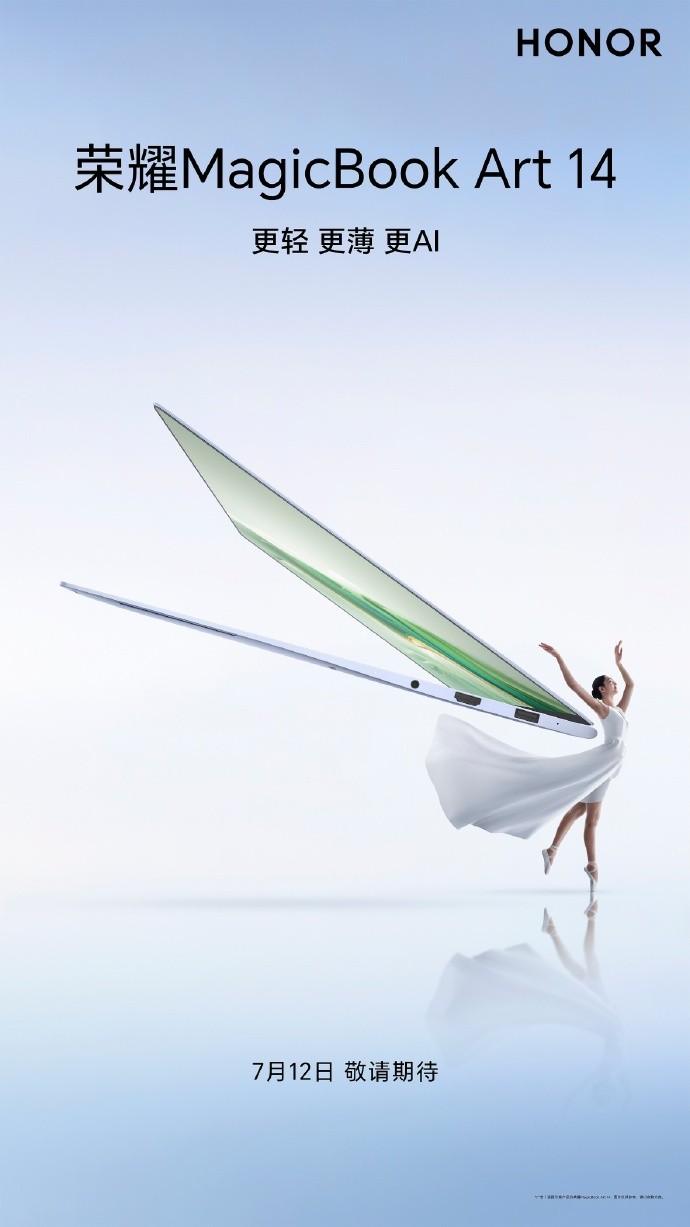 手机品牌跨界做笔记本,总是能够带来惊喜。荣耀将会于7月12日举行荣耀Magic旗舰新品发布会,除了发布旗舰智能手机之外,还有一款同样非常重磅的荣耀MagicBook Art 14。如今官方也放出了不少消息,并且表示,荣耀MagicBook Art 14将会成为全球最轻薄的AI PC!