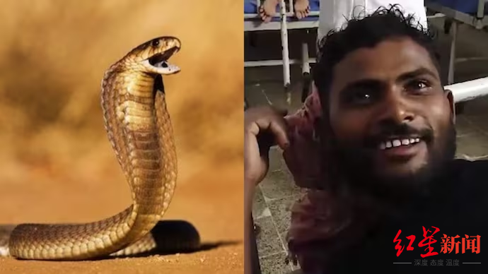 在印度比哈尔邦,35岁的铁路工人桑托什·罗哈尔在茂密森林地区铺设铁路轨道。当地时间7月2日晚上,经过一整天的工作,罗哈尔正准备入睡时,遭到一条蛇偷袭。