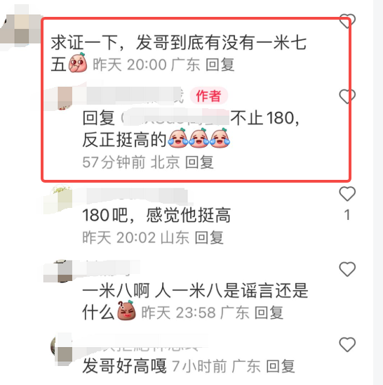 还有人求证在朝阳公园偶遇周润发的网民“发哥到底有没有一米七五”,不少粉丝都说发哥很高,当天见过真人的网民也证实了这一点:“发哥身高不止180,反正挺高的。”不过周润发曾亲口对鲁豫说自己180不到。