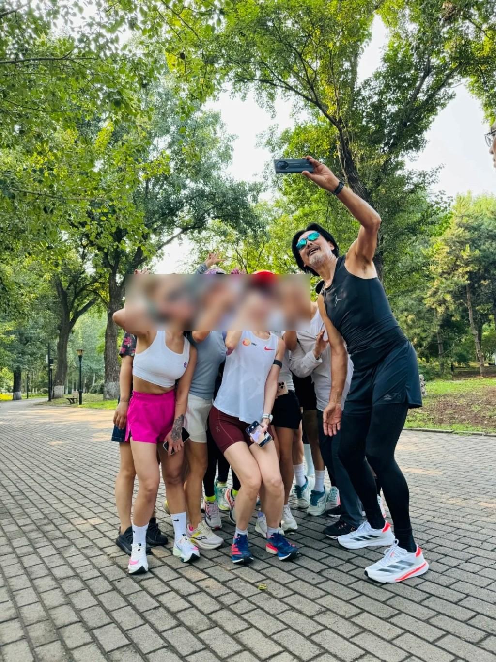 另一位当天捕获周润发的网民写道:“听说发哥最近在朝阳公园跑步,那一定得去偶遇一下啊!但这真的也是靠缘分的,嘿!真是真不是缘分来了吗?”照片可见,周润发极受女士欢迎,就算他跑到大汗淋漓、全身湿透,但仍被多名女跑友围着拍合照。