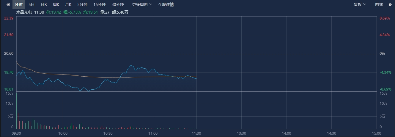 7月12日,水晶光电盘中一度跌超9%,截至早盘收盘,跌5.73%,报19.42元/股。昨日晚间公告,预计2024年上半年净利润为4亿元至4.5亿元,同比增长125.45%至153.64%;扣非净利润为3.8亿元至4.2亿元,同比增长243.47%至279.62%。