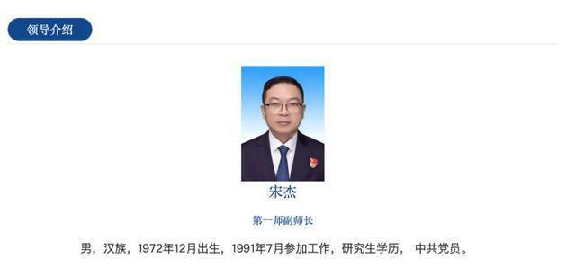 据官网介绍,宋杰,男,汉族,1972年12月出生,1991年7月参加工作,研究生学历, 中共党员。他曾任新疆生产建设兵团第一师9团党委书记、政委,后任第一师副师长。