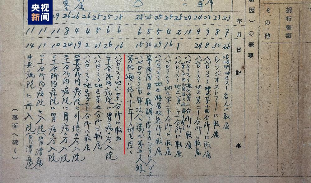 侵华日军第七三一部队罪证陈列馆研究人员 金士成:我们在整理身上申告书的过程中发现,除了久留岛佑司以外,还有9人也在伯力受到审判,被判处10—25年的有期徒刑。而值得注意的是,这些人的审判日期是1950年的4月到9月,也就是说1949年12月25日到30日伯力审判之后,苏联方面仍然对日本细菌战罪行进行调查和审判,这是我们以往研究中不曾发现、不曾注意的。