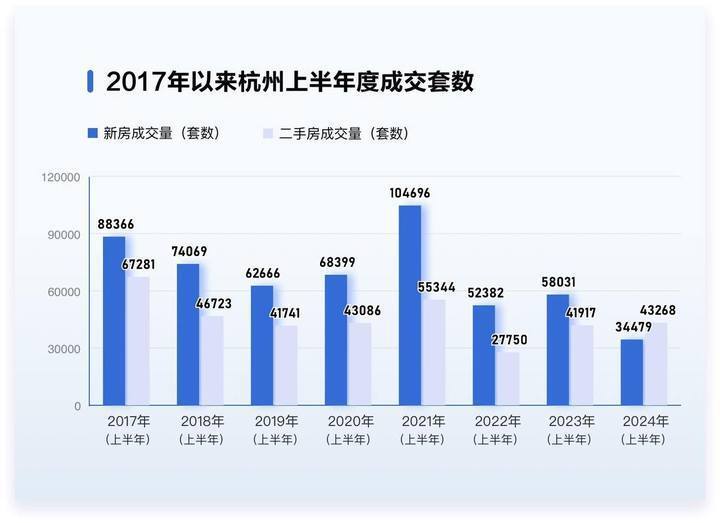 6月,杭州市区二手房共成交8849套,创下15个月以来新高。上半年二手房成交量则超过4.3万套,自2019年以来,排名第二,仅次于2021年上半年的5.5万套。