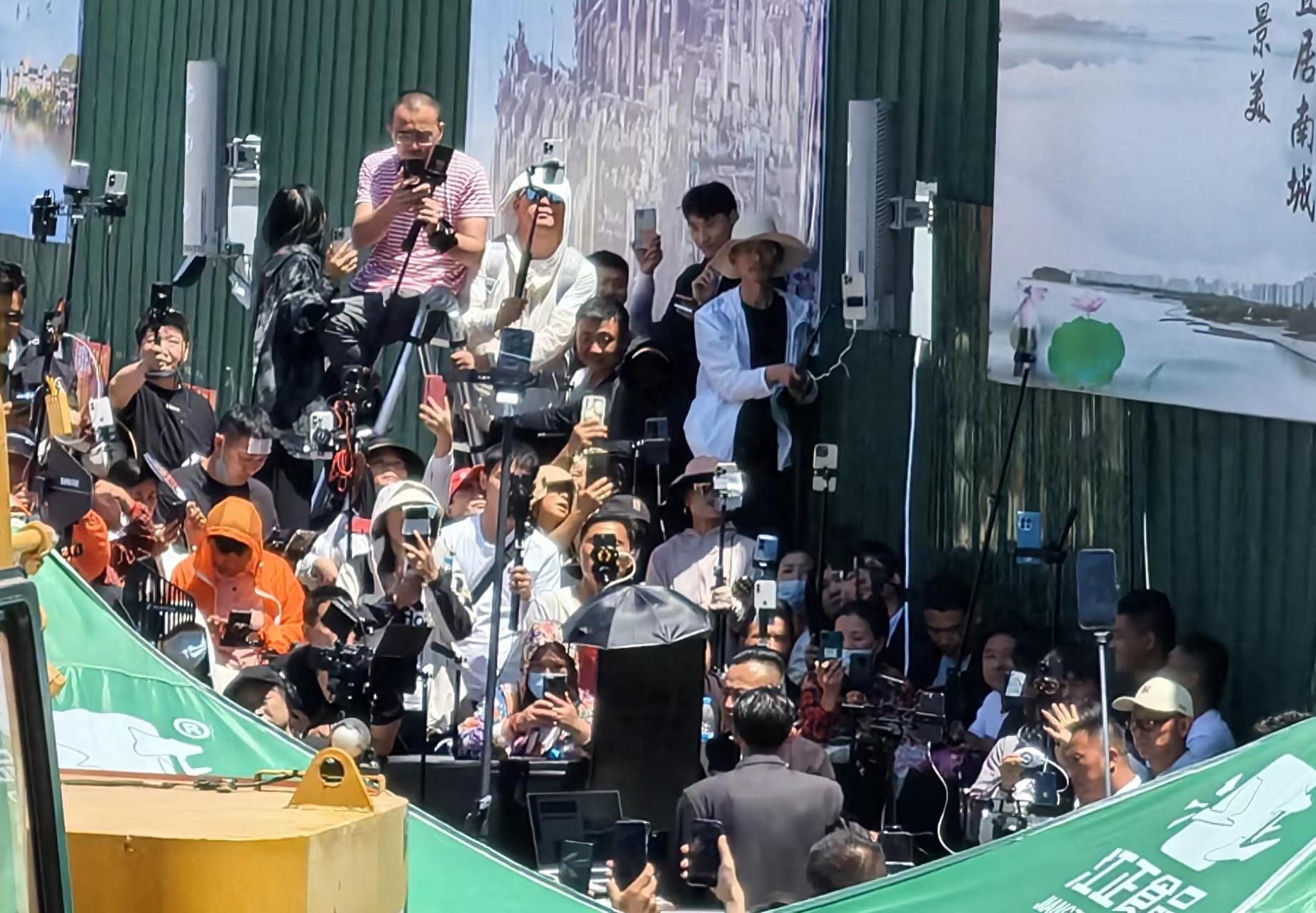 郭有才直播时,被众多镜头包围。图/九派新闻 马婕盈