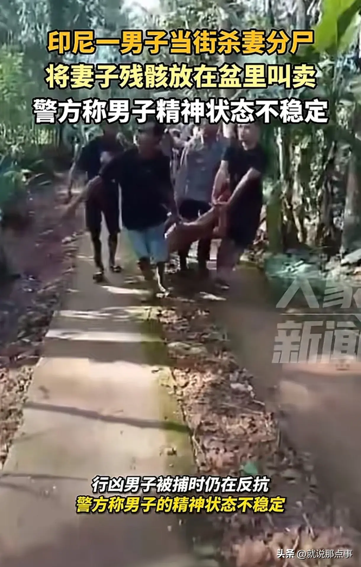 据大象新闻的报道,5月3日,印度尼西亚西爪哇省一名男子当街杀妻分尸!