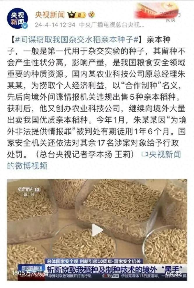 日前,国家安全部近日披露5起国家安全领域典型案例,其中,“间谍窃取我国杂交水稻亲本种子”一案登上热搜。为什么间谍机构要偷种子?他们盯上的种子有多特别?会对我们产生什么影响呢?今天我们就聊聊这个问题。