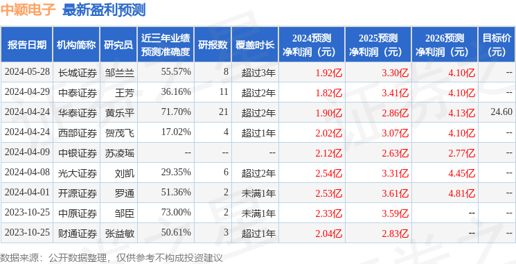 以下是详细的盈利预测信息: