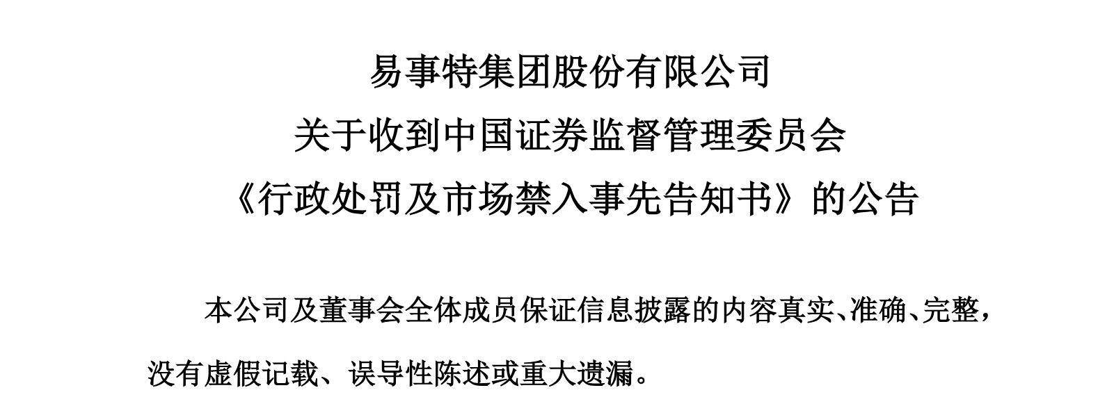 7月5日晚间,易事特(300376)公告,收到中国证监会《行政处罚及市场禁入事先告知书》。