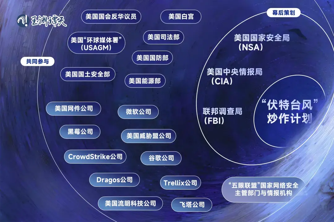 以往的这种计划,和“伏特台风”也都类似——美国情报部门策划、美国政府部门参与、美国公司配合。这三个主体,炮制了一个个抹黑中国的虚假叙事。