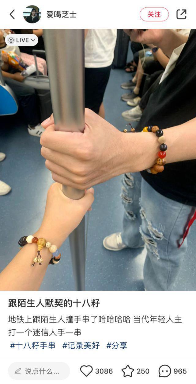 ▲ 地铁上撞手串的年轻人。图 / 小红书博主@爱喝芝士