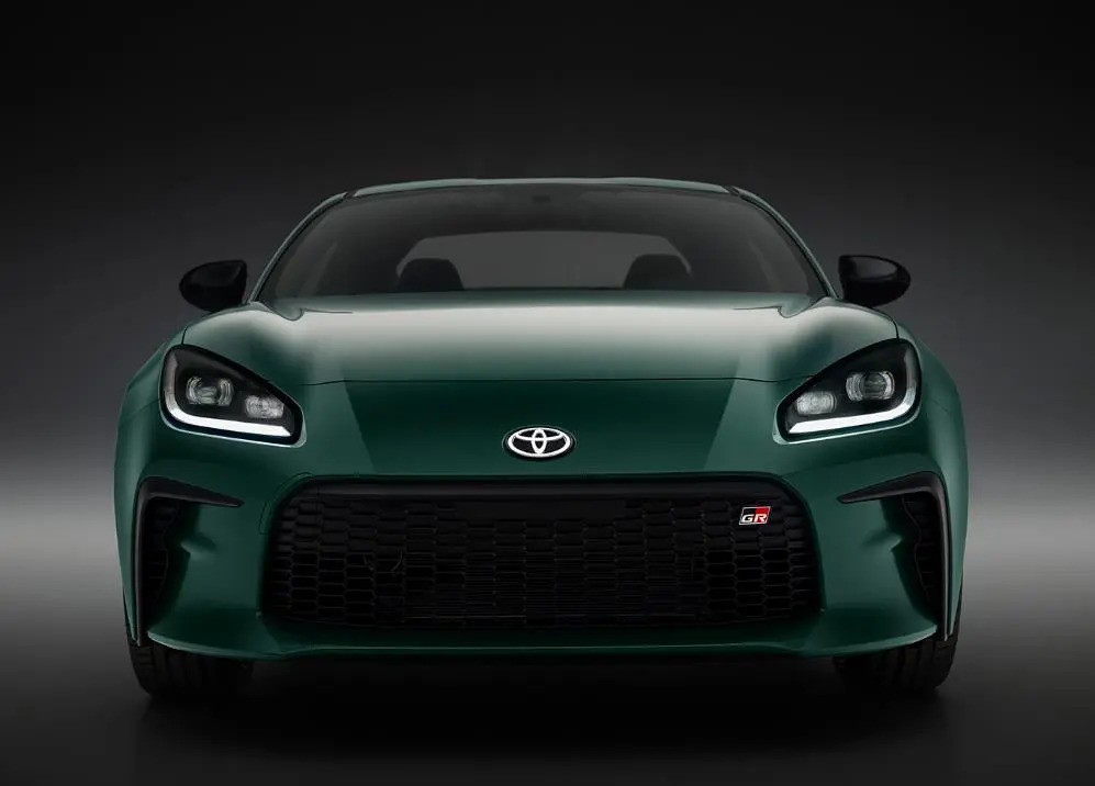 外观设计上,GR 86箱根特别版采用了独特的山脊绿车漆,给新车增添了几分神秘感。在车头部分,大尺寸的熏黑中网搭配丰田高性能部门GR的标志和两侧的导流槽设计,共同营造出强烈的运动氛围和攻击性。车身侧面配备了古铜色多辐轮圈,并搭载了SACHS避振系统和经过特殊底盘调校,这将显著提升车辆在激烈驾驶时的侧倾控制和转向灵敏度。