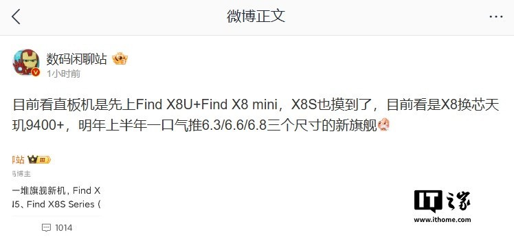 据最新爆料,OPPO Find X8 Ultra有望成为该品牌在2025年推出的一款旗舰手机。同时,OPPO还计划推出另一款名为Find X8 mini的新机。博主透露称自己已经体验了OPPO Find X8S,并表示该机将采用天玑9400+处理器。