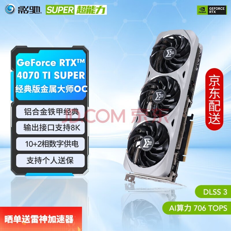 影驰 GeForce RTX 4070Ti SUPER新品/RTX4070Ti S 设计视频渲染AI绘图2K游戏电竞台式机电脑显卡 RTX4070TI S 经典金属大师OC