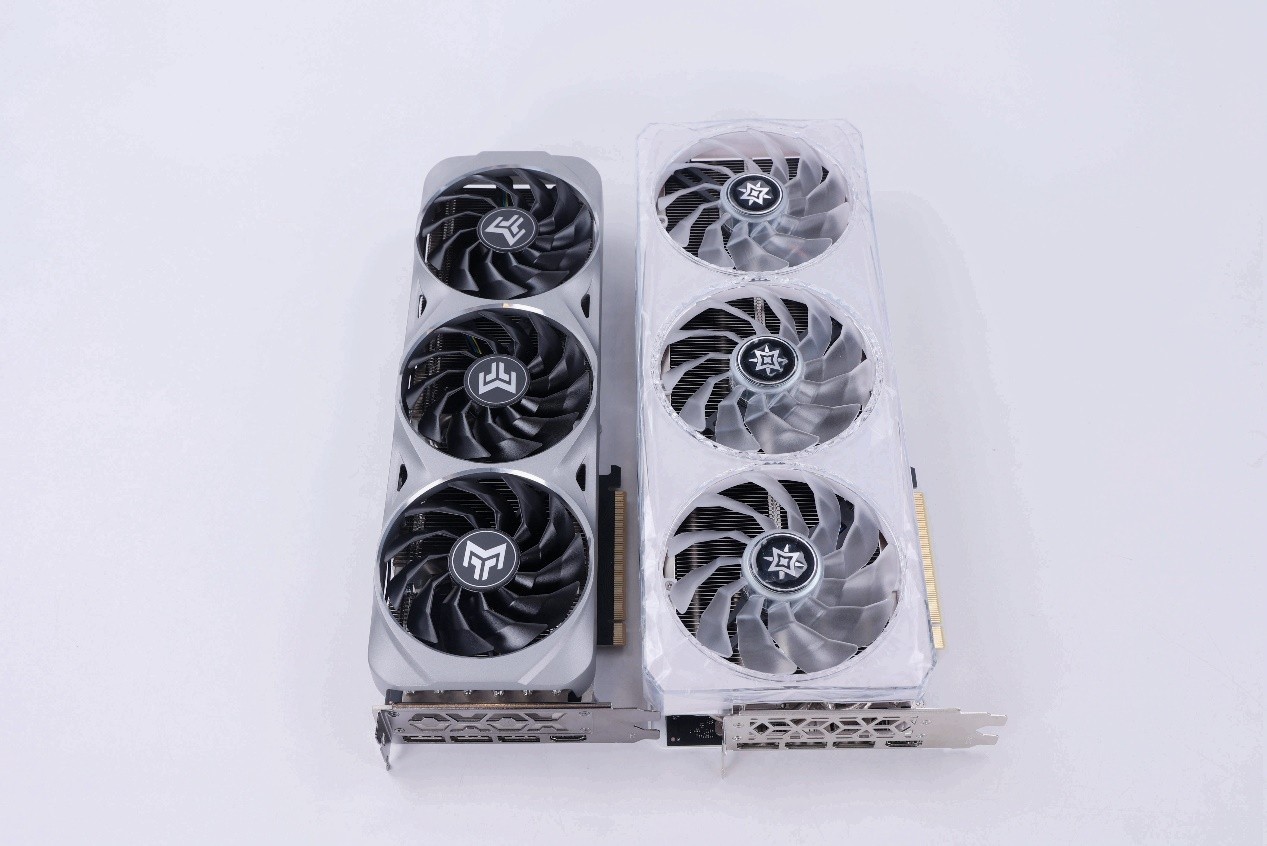 首先,还是选择一张影驰GeForceRTX 4070 Ti SUPER星曜OC来与本卡对比散热器部分,不难发现,影驰GeForceRTX 4070 Ti SUPER经典金属大师OC的散热鳍片更厚,体积也更为小巧。