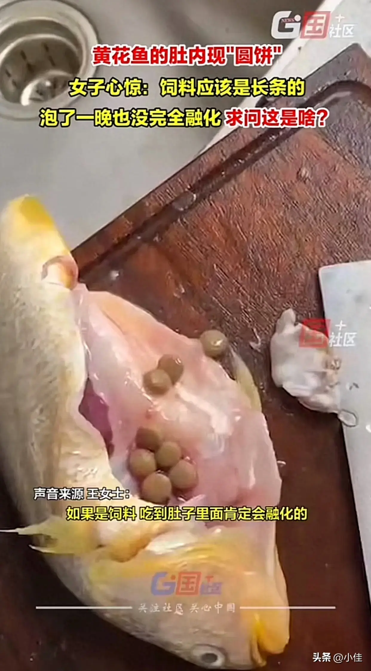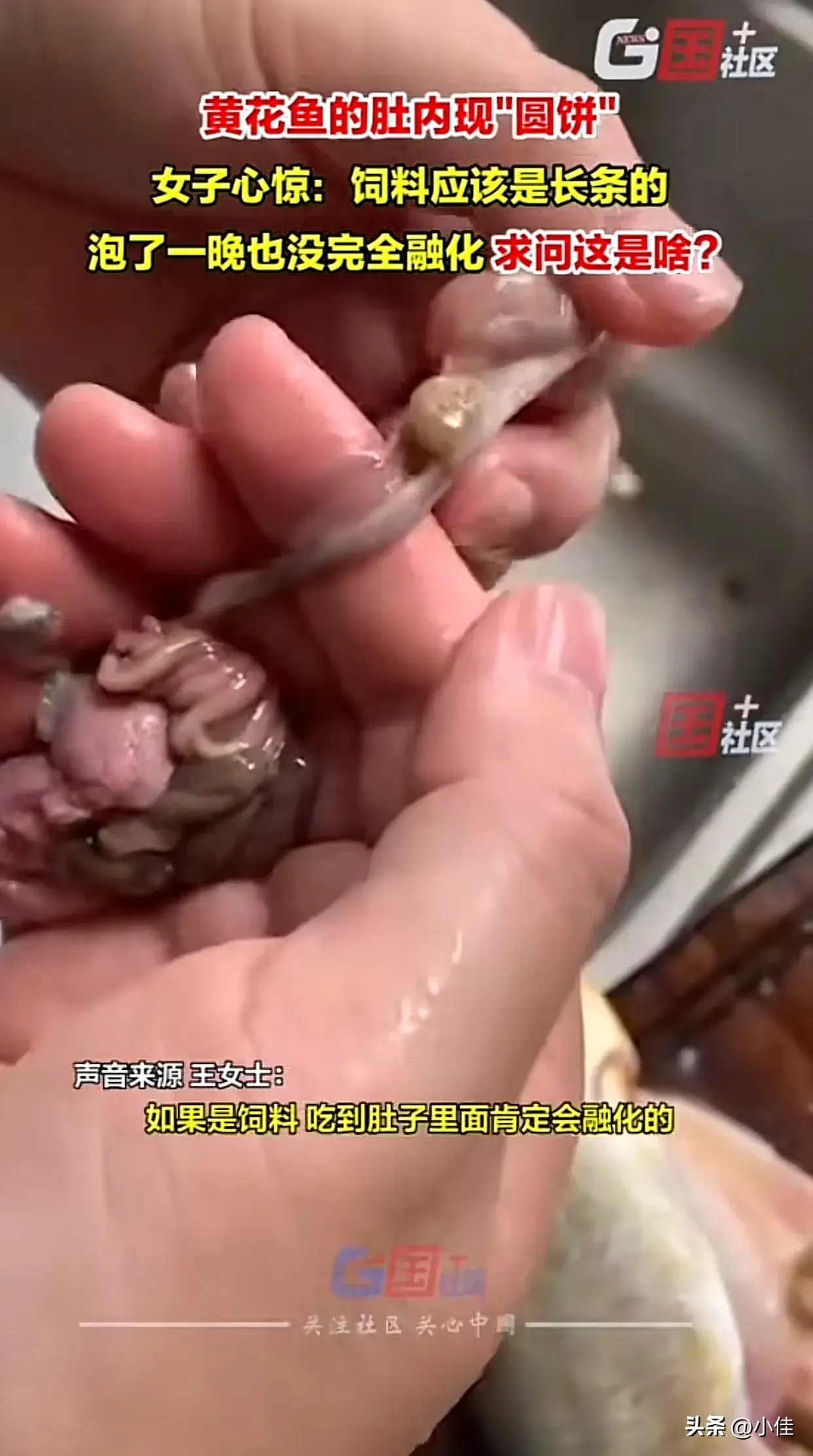 不久前,一位渔民在东海捕捞到了一条体型肥硕的黄花鱼。在清理鱼肚的过程中,他意外地发现了一个形状奇特的“圆饼”。今天24小时的浸泡这个“圆饼”还是没有融化。这个“圆饼”呈圆形,表面光滑,质地坚韧,颜色呈现出淡淡的黄色。渔民们纷纷围观,对这个神秘的“圆饼”充满了好奇和疑惑。