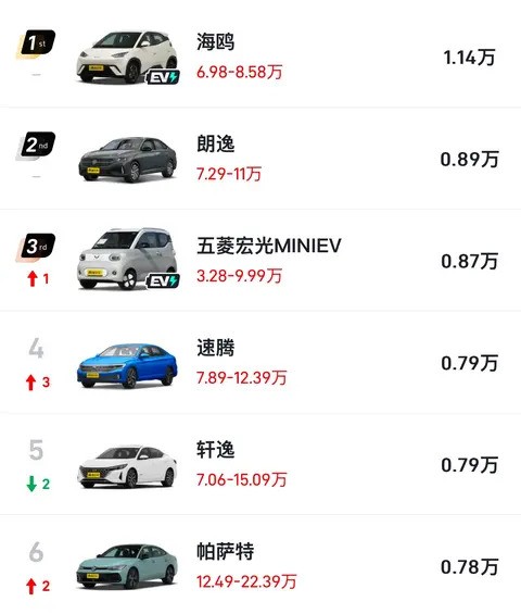 然而,在这份榜单上我们也可以看到一些令人欣喜的变化。相较于以往,燃油汽车的销量有所提升,尤其是海鸥这款车型取得了巨大成功。