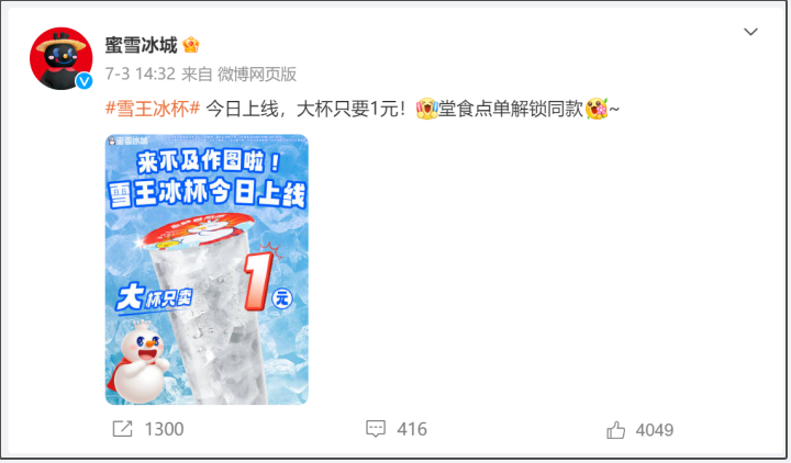 今天下午,蜜雪冰城就有门店拒绝售卖“雪王冰杯”一事道歉。