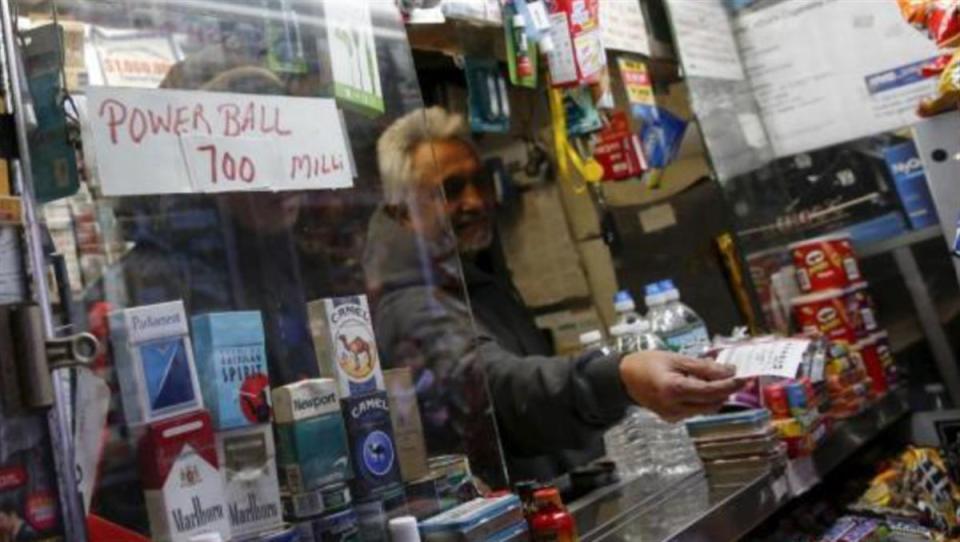 2016年1月,在美国华盛顿,一家便利店出售强力球彩票(图源:中国新闻网)