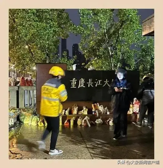 此次事件曝光并引发全网热议后,很多爱心人士前往长江大桥送外卖以及鲜花祭奠。