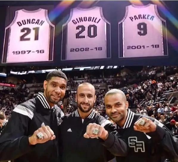 2016年40岁蒂姆邓肯率先离开,接着2018年41岁吉诺比利也宣布了退役,18年托尼帕克只有36岁仍可以发挥余热,不过邓肯、吉诺比利离开后帕克缺少支持在和伦纳德的交锋中落入下风最终被迫离队加盟了夏洛特黄蜂,一年后2019年6月10日托尼帕克也宣布了退役!