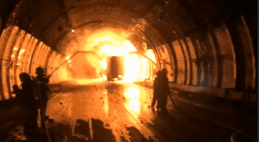 这两者的结合使得火势愈发猛烈,车辆内部充斥着滚滚浓烟,又没有任何的通风设备,使得隧道内的能见度降到了最低。