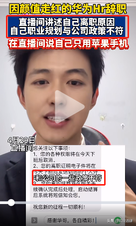 在直播中他也讲述了自己的离职原因,说主要是华为公司的发展政策与自身的职业规划并不符合,于是决定辞职。