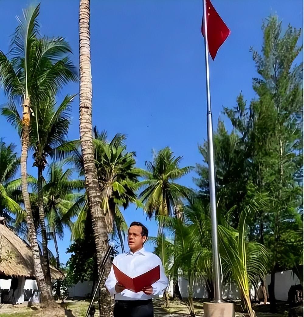 在选了一块好地方后,吴钟华掏出了自带的设备,代表我们中国的国旗,冉冉升起,这就是基里巴斯的第一个大使馆。