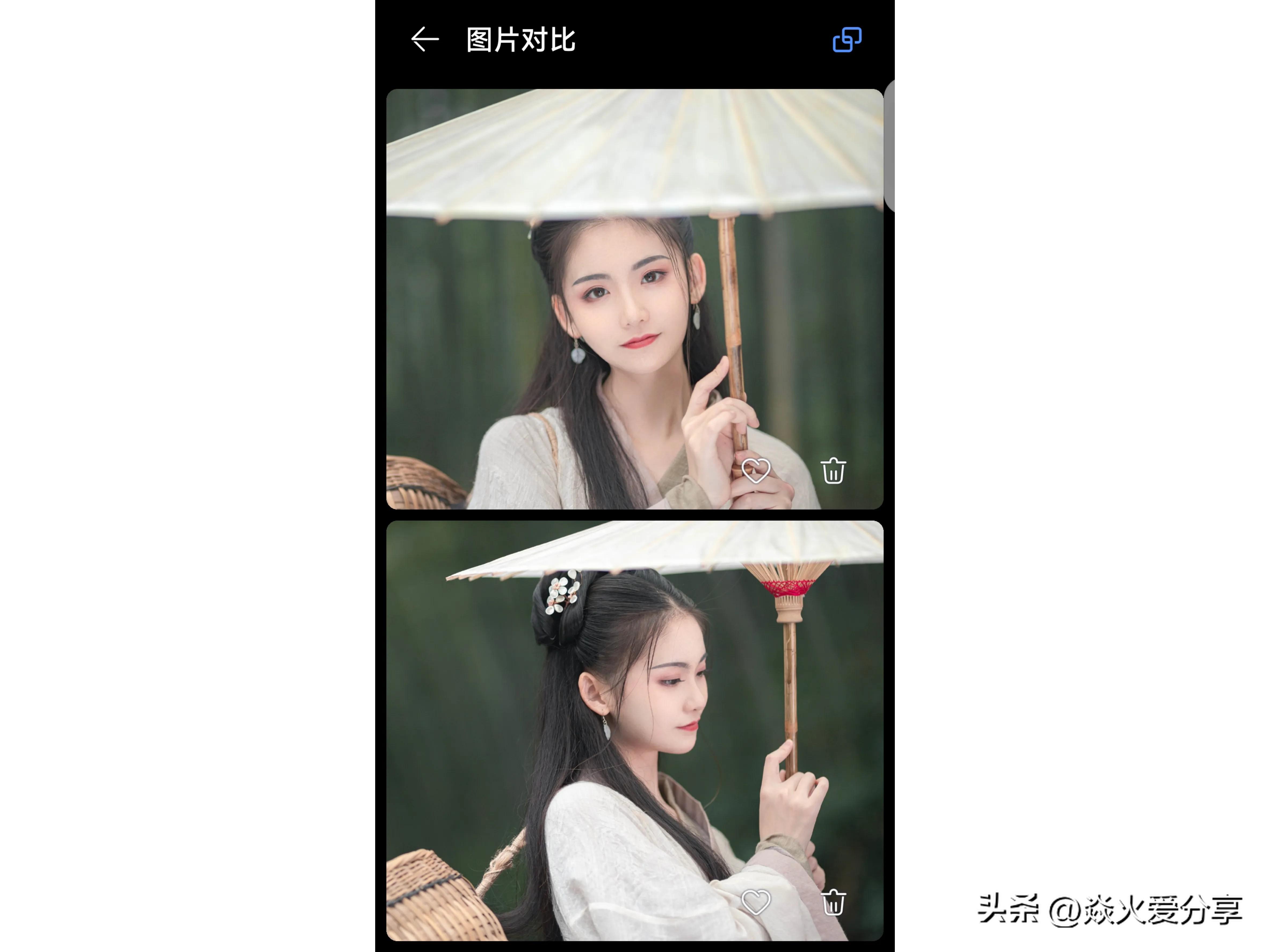 同时呢,点击左下角这里的加号,还可以添加多张照片来进行对比。