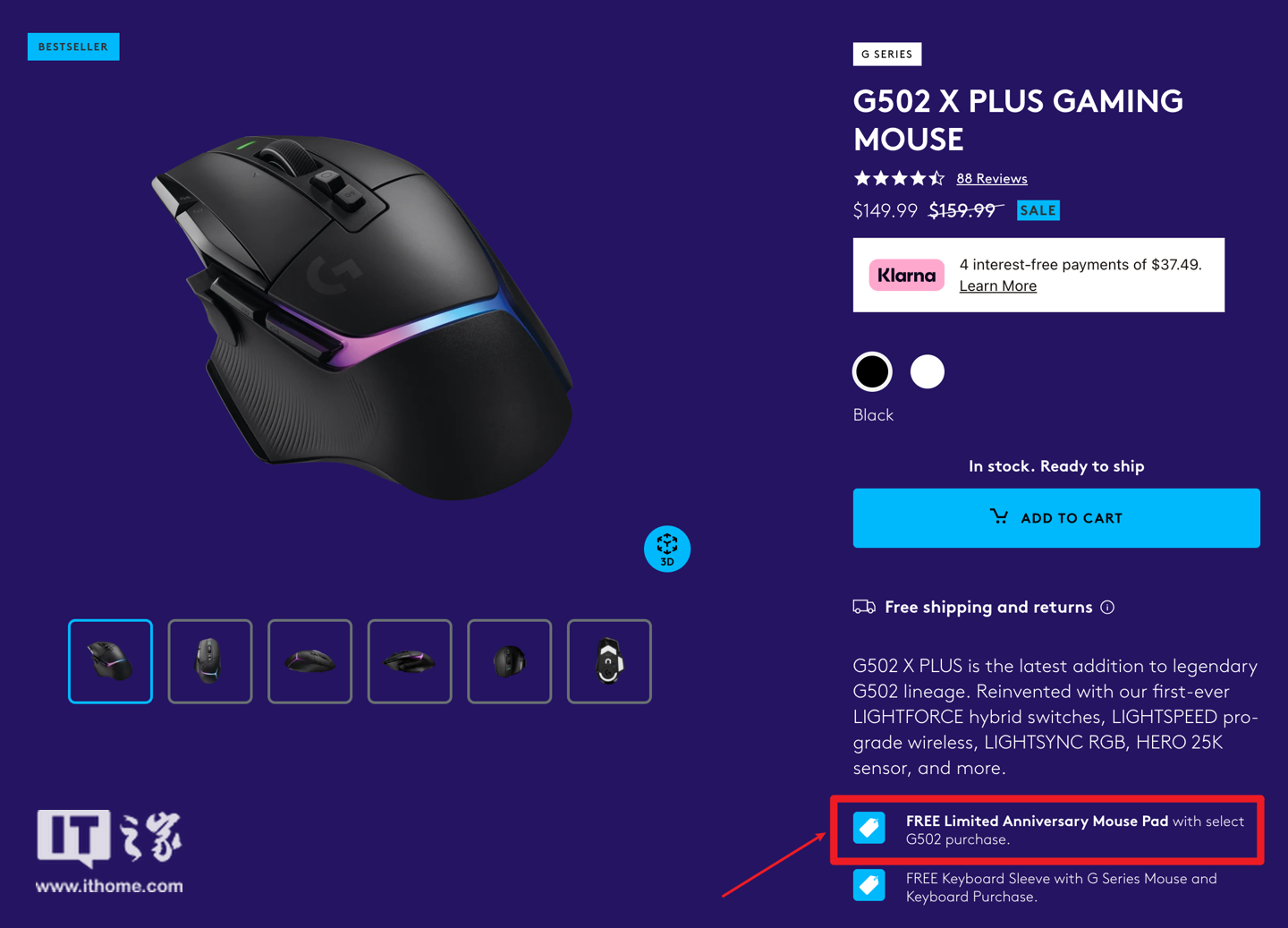 IT之家发现,罗技北美官网显示购买 G502 X PLUS 与 G502 X LIGHSPEED 鼠标将获赠定制版 G640 鼠标垫,其他型号的 G502 鼠标及罗技国内渠道尚未提供该活动。