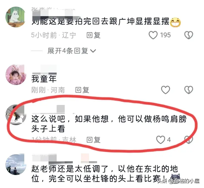 还有网友表示:本山大叔完全可以坐在杨鸣肩膀上看,也可以坐在杜峰头上看。
