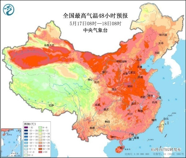 详情:据中国天气网消息,5月17日至19日,南疆盆地、华北平原、黄淮等地的部分地区将有35℃以上高温,局地气温甚至可超37℃。省会级城市中,西安、郑州、济南都有望迎来今年首个高温天气,普遍早于常年,其中西安、郑州将遭遇高温“两连击”,公众外出还需注意防暑降温。而南方的暖热程度远远不及北方,由于云量较多,多地还有雨水出没,气温普遍会低于常年同期,江南大部最高气温普遍在30℃左右,南北气温倒挂。(来源:中央气象台、@中国天气网)