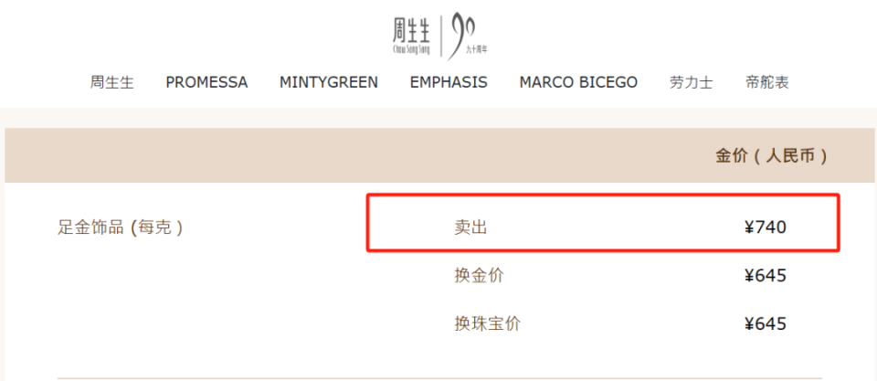 周末,多家金店火速调高黄金零售价,目前国内各品牌黄金首饰价格已达740元/克附近,不少金店价格已刷新之前纪录。