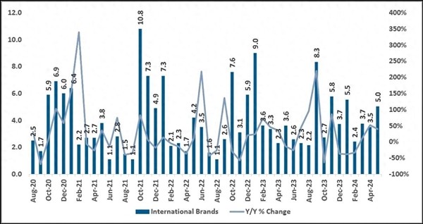 其援引ACICT数据,相比4月份,iPhone在5月份的销量猛增44%,而5月正好是iPhone大幅降价的一个月。摩根大通认为,除了iPhone降价之外,还有一个原因是,中国智能手机市场正在复苏。