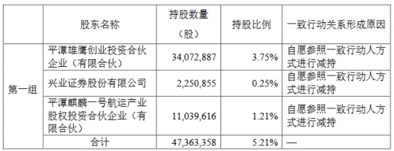 截至2024年7月1日,平潭雄鹰持有海通发展34,072,887股,占公司总股本3.75%;平潭麒麟一号航运产业股权投资合伙企业(有限合伙)(以下简称“平潭麒麟”)持有公司11,039,616股,占公司总股本1.21%;兴业证券持有公司2,250,855股,占公司总股本0.25%。