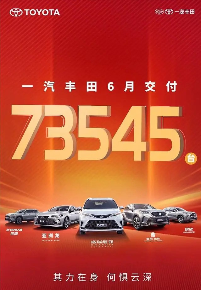 一汽丰田公布6月份交付数据,共销售73545台新车。其中,丰田RAV4荣放和卡罗拉锐放等车型表现出色,月销量均超过万台,成为一汽丰田销量增长的重要支柱。