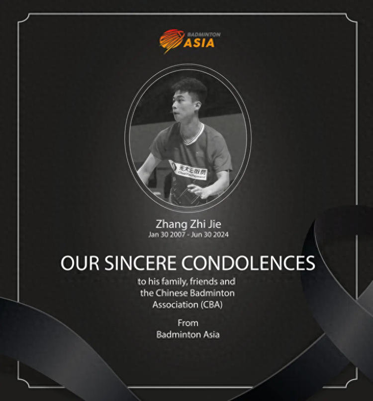 综合新华社报道,亚洲羽毛球联合会7月1日发布公告称,张志杰在印尼举行的一场比赛中晕倒在球场上,被送往医院后于当地时间6月30日23时20分去世。“亚洲羽毛球联合会、印尼羽毛球协会和组委会对此深表悲痛,并向张志杰的父母、家人和中国羽毛球协会表示最深切的慰问。”公告中写道,“世界羽坛失去了一位富有天赋的选手。”