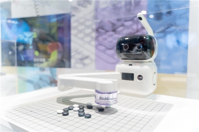 在特展现场,观众们可以感受到元萝卜AI下棋机器人围棋版的多种“职能”。它既是一位专业的专职陪练,拥有丰富的人机对弈和人人对弈功能,从小白到职业冠军都能找到旗鼓相当的对手;也是一位耐心的辅导老师,可以通过“画面引导+语音激励+机械臂演示”,带来视觉、听觉、触觉多种感官融合的立体化围棋学习体验;还是一位老少咸宜的AI玩伴,内置的趣味益智的“五子棋”游戏,可以成为全家人的情感纽带。