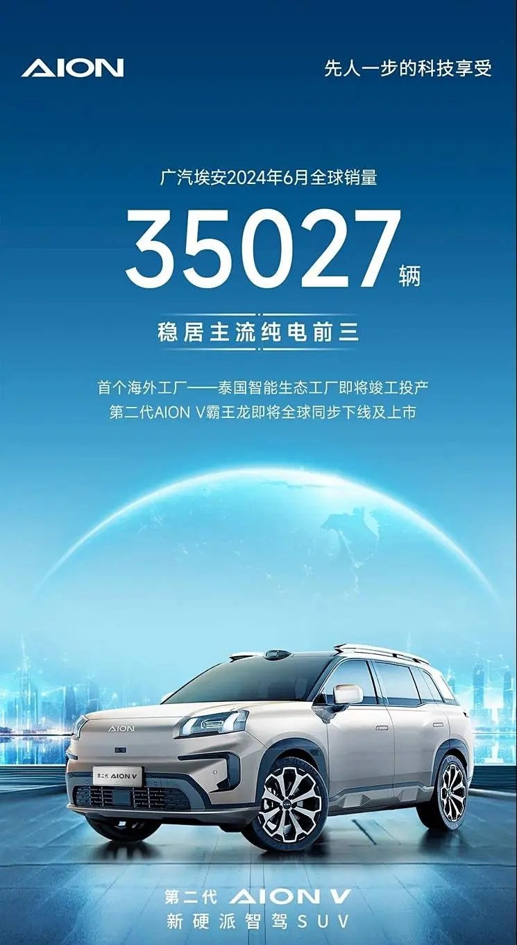 广汽埃安6月销量突破3.5万辆 广汽埃安近日公布了其2023年6月的全球销量数据,累计销售新车35027台。尽管这一数据较去年同期减少了22.18%,但与今年5月相比,却增长了12.59%。