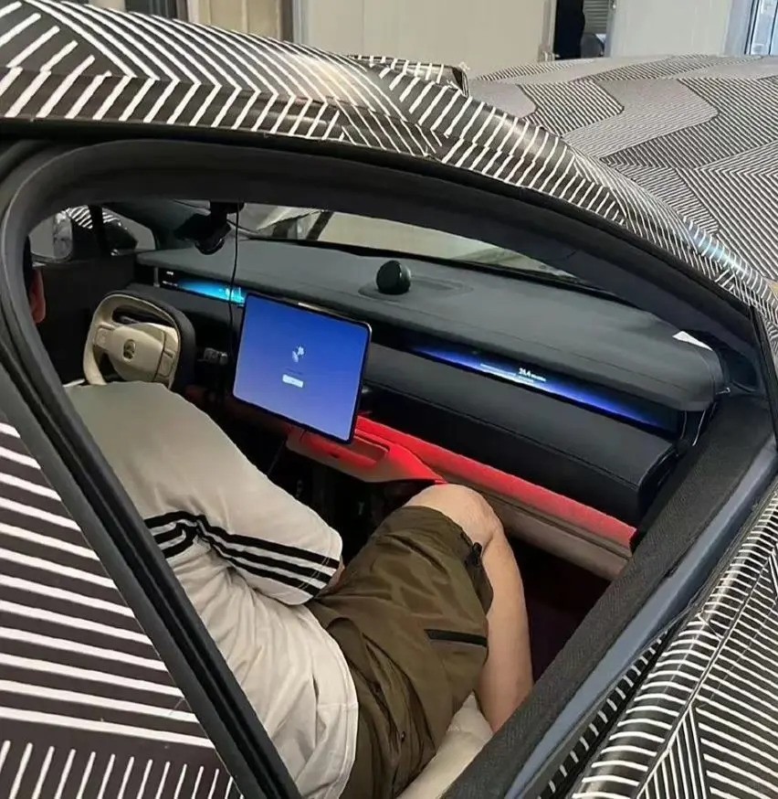 从谍照中可以看出,新车采用类似阿维塔12一样的远端屏设计,并搭载了一块细长的屏幕,因此不适合观看视频等功能。中控台上配备了一块大尺寸屏幕,大多数功能被集成在此。此外,新车还配备了圆角矩形双辐方向盘和氛围灯等元素,使得内饰更加时尚舒适。